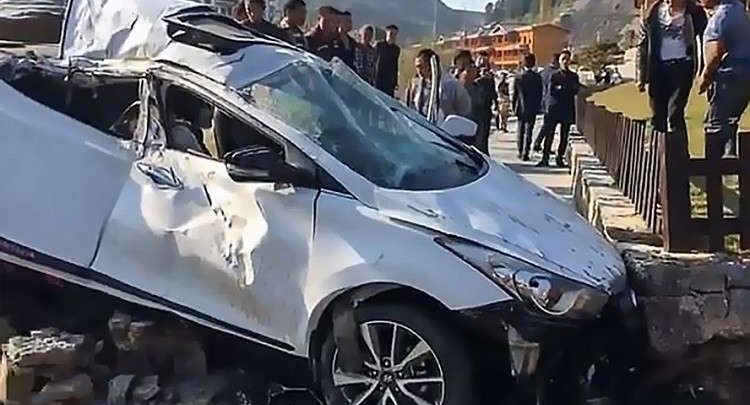 نجاة امرأة صينية طارت في الهواء بعد حادث سيارة ! ( فيديو )