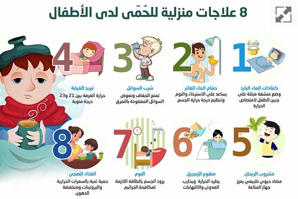 وفيما يلي، مجموعة من العلاجات المنزلية، التي يمكن استخدامها لعلاج الحُمّى أو التخفيف منها، بحسب ما نقلت شبكة “24” الإماراتية عن موقع “توب 10 هوم ريميديز”: