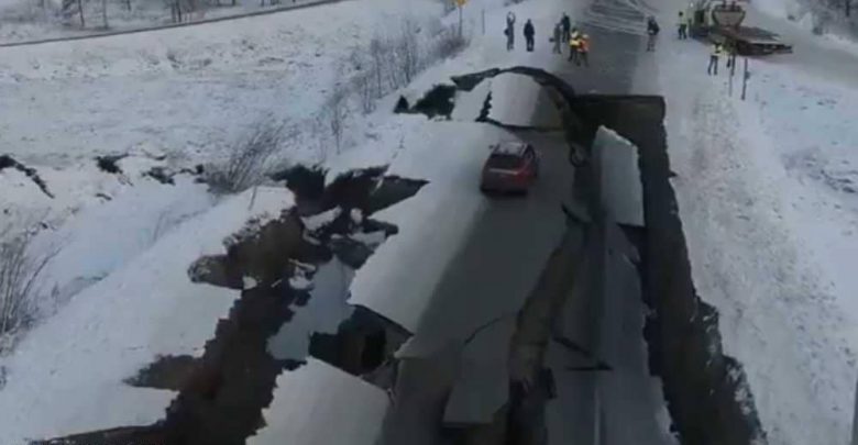 أمريكا : زلزال يشق الأرض و يحطم الجسور و يلوث المياه في ألاسكا ( فيديو )