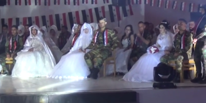 شهدت مدينة درعا احتفالا بعرس جماعي لعشرين عنصراً من الميليشيات المحلية التي يطلق عليها الموالون اسم “الجيش العربي” السوري.