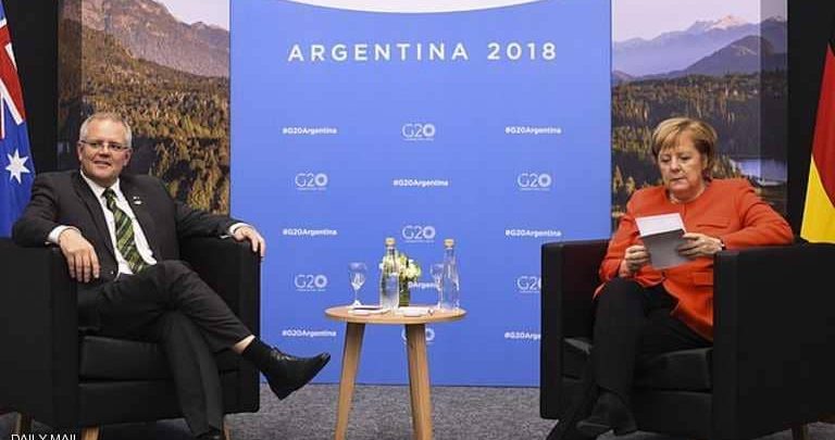 غير أنه هذا الأمر لم ينطبق، على الأقل هذه المرة، على المستشارة الألمانية أنغيلا ميركل، وشريكها في أحد الحوارات أو الأحاديث، رئيس الوزراء الأسترالي سكوت موريسون، وذلك على هامش اجتماعات قمة العشرين في الأرجنتين.