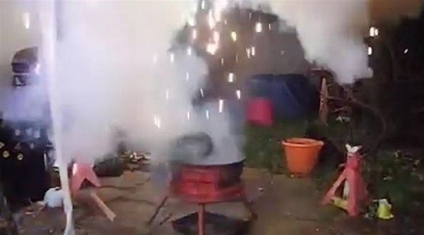 وأجرى يوغي كروسيل (51 عاماً) تجربة علمية، خلط فيها عنصرين كيماويين، مما تسبب بانفجار ضخم، وشارك نتيجة التجربة مع طلابه على الإنترنت.