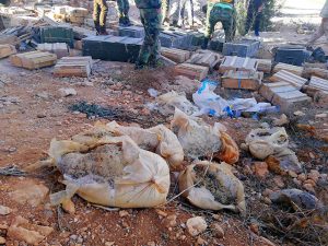 وأضاف المراسل: “تمكنت قوات الأمن من استخراج الأسلحة من موقعين في المنطقة، وبينها كميات كبيرة من حشوات قذائف آر بي جي وقذائف الهاون وذخائر أسلحة متوسطة، وأسمدة تستخدم في صناعة المتفجرات والعبوات الناسفة، إضافة إلى كميات كبيرة من الصواريخ المتنوعة التي كانت تستخدمها المجموعات الإرهابية المسلحة في استهداف الأحياء الآمنة ومواقع الجيش العربي السوري في محافظة درعا”.