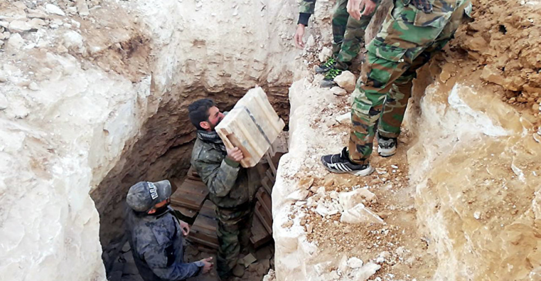 ونقلت عن مراسلها في درعا قوله إنه “خلال عمليات البحث والتمشيط تمكنت الجهات الأمنية في المحافظة من ضبط مستودعات ذخيرة متنوعة مخبأة في باطن الأرض ضمن أنفاق في المزارع الجنوبية لبلدة نصيب وعلى أعماق متفاوتة من 4 إلى 6 أمتار”.