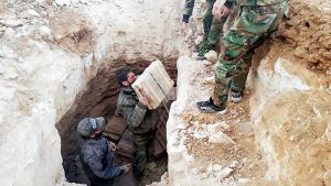 ونقلت عن مراسلها في درعا قوله إنه “خلال عمليات البحث والتمشيط تمكنت الجهات الأمنية في المحافظة من ضبط مستودعات ذخيرة متنوعة مخبأة في باطن الأرض ضمن أنفاق في المزارع الجنوبية لبلدة نصيب وعلى أعماق متفاوتة من 4 إلى 6 أمتار”.