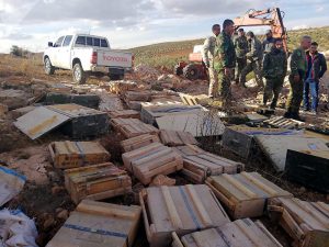 وأضاف المراسل: “تمكنت قوات الأمن من استخراج الأسلحة من موقعين في المنطقة، وبينها كميات كبيرة من حشوات قذائف آر بي جي وقذائف الهاون وذخائر أسلحة متوسطة، وأسمدة تستخدم في صناعة المتفجرات والعبوات الناسفة، إضافة إلى كميات كبيرة من الصواريخ المتنوعة التي كانت تستخدمها المجموعات الإرهابية المسلحة في استهداف الأحياء الآمنة ومواقع الجيش العربي السوري في محافظة درعا”.