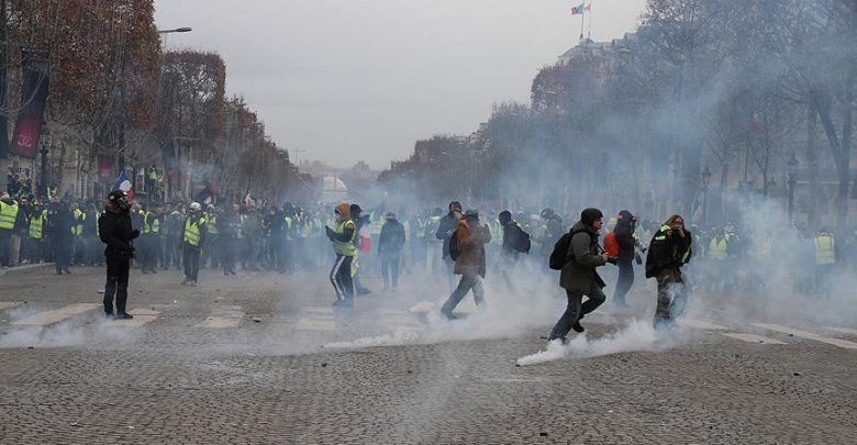 وشرعت الشرطة في استخدام الغاز المسيل للدموع ضد “السترات الصفراء”.