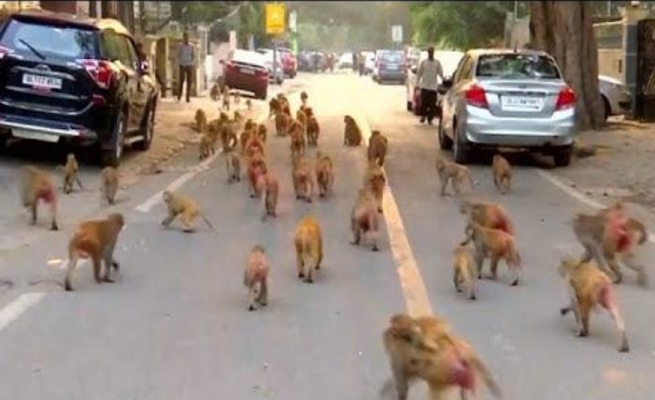 آلاف القردة تغزو المباني الحكومية في الهند ( فيديو )