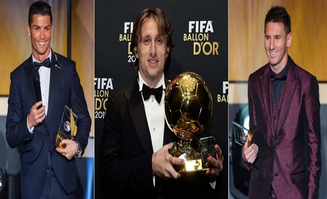 انتقد لوكا مودريتش الفائز بجائزة الكرة الذهبية لأفضل لاعب كرة قدم في العالم الثنائي كريستيانو رونالدو وليونيل ميسي لعدم حضورهما الاحتفال الذي أقيم الشهر الجاري ونال خلاله اللاعب الكرواتي الجائزة قائلا إن قرارهما غير منصف لبقية اللاعبين ولمن شاركوا في التصويت.