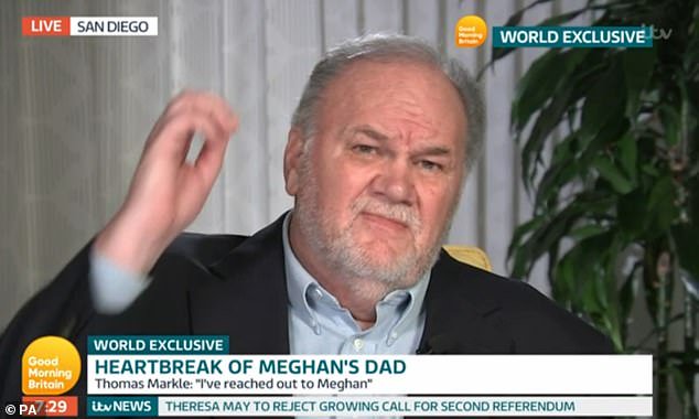 في لقائه، قال “توماس” 74 عاما، إنه تحدث آخر مرة إلى ابنته “ميغان” عشية زفافها في 19 مايو الماضي، وأنه منذ أن فشل في السير بها في ممر العروس بقلعة “وندسور” وهي ترفض كافة محاولات الاتصال بها، مشيرا إلى أن ابنته دائما كانت شخصا مسيطرا، وهذا جزء من طبيعتها، إلا أنها أبدا لم تكن شخصا وقحا.