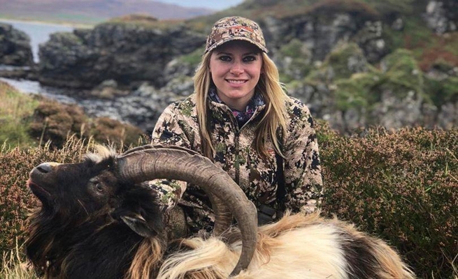 وقد نشرت #لاريسا_سوتليك سلسلة من الصور لها على وسائل التواصل الاجتماعي، وهي تقف بجوار الماعز المذبوحة كما وهي تصوب السلاح لقتل الحيوانات البرية، وذلك بجزيرة إيسلاي الاسكتلندية.