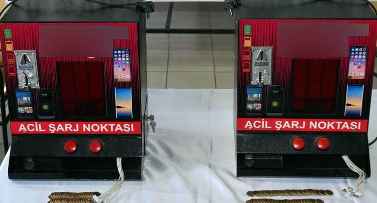 ضبطت قوات الدرك ماكينتين للعب القمار داخل جهازين لشحن الهواتف المحمولة في مقهى بمدينة أيدن، غربي تركيا.