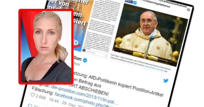 نشرت سياسية من حزب البديل اليميني المتطرف، خبر نسخته من موقع ساخر، على أنه مقال من تأليفها.