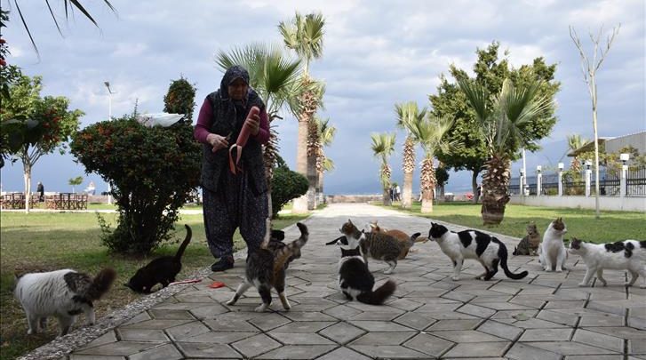 تعرف فاطمة باستيك بين أفراد حيها بـ”أم القطط”، منذ أن كرست حياتها قبل 12 عاما، للعناية بقطط الشوارع في مدينة إسكندرون بولاية هطاي جنوبي تركيا.