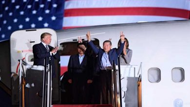 وصول الطائرة التي تقل الأمريكيين المفرج عنهم من كوريا الشمالية لقاعدة عسكرية