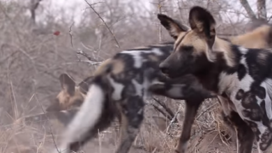 كلاب برية تمزق فريستها أمام كاميرا سياح حالفهم الحظ ( فيديو )