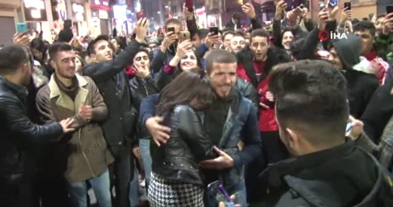 سوري يتقدم بطلب الزواج من صديقته خلال الدقائق الأولى من العام الجديد وسط أشهر شارع في تركيا ( فيديو )