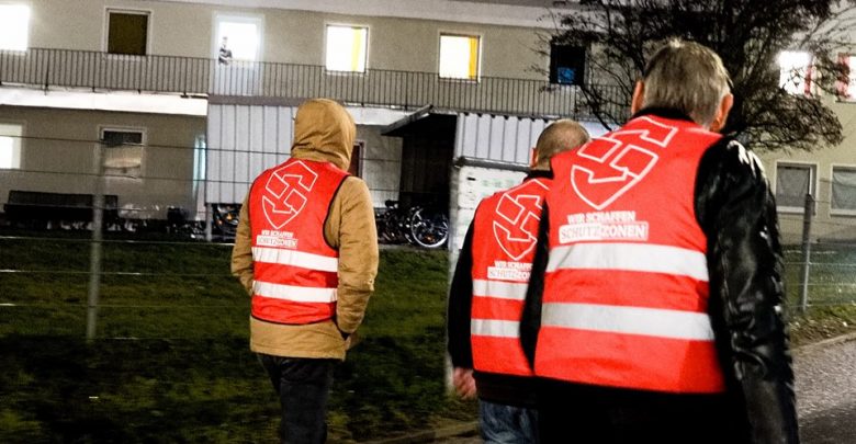 كما نشرت صفحة الحزب الوطني الديمقراطي في ألمانيا (إن بي دي) اليميني المتطرف، على “فيسبوك” صوراً لأربعة أشخاص يرتدون سترات واقية حمراء يتجولون في أنحاء المدينة.