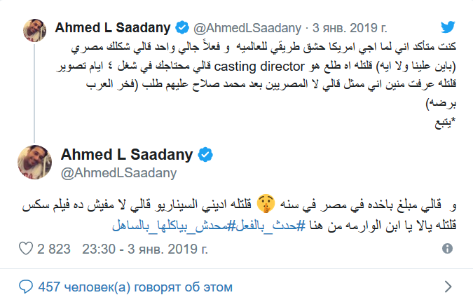 وأفصح عبر حسابه على “تويتر”، وفق ما اوردت قناة “روسيا اليوم”، أنه عندما قدم إلى الولايات المتحدة، أملا في عثوره على فرصة للوصول إلى العالمية، التقى بأحد الأشخاص هناك، وعرض عليه تصوير أحد الأعمال لمدة 4 أيام.