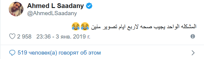 واختتم أحمد السعدني تغريدته متسائلا بسخرية: “من أين سيأتي بالصحة من أجل تصوير فيلم جنسي لمدة 4 أيام”.