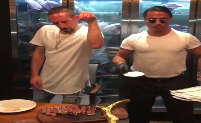 ووفقاً لقناة “روسيا اليوم”، كان ريبيري قد نشر الخميس الماضي على حساباته في تويتر وانستغرام فيديو يظهر فيه في أحد مطاعم الطاهي التركي الشهير نصرت غوكشيه الملقب بـ”سالت باي”، حيث وضعت أمامه شريحة لحم مغلفة بورق الذهب، قبل أن يقوم الطاهي بتقطيعها وإفساح المجال أمام اللاعب البالغ 35 عاما لرش الملح عليها، وهي الحركة التي اشتهر بها الطاهي عبر مواقع التواصل.