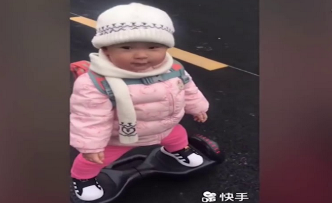 رضيعة صينية تذهل العالم بركوب ألواح التزلج الكهربائية بإتقان ( فيديو )