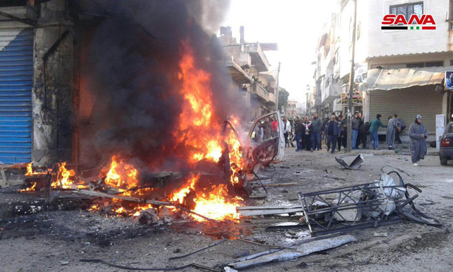 قالت وكالة أنباء النظام “سانا”، الثلاثاء، إن سيارة مفخخة من نوع “سوزوكي” انفجرت، متسببة بإصابة عدة أشخاص.