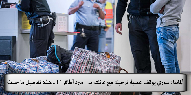 في صباح الثلاثاء، عطل رجل سوري عملية ترحيله وعائلته إلى إسبانيا، بعد تهديده بالانتحار بأداةً حادة، تمكن من إدخالها معه على متن طائرة الترحيل، في مطار فرانكفورت، بولاية هيسن الألمانية.