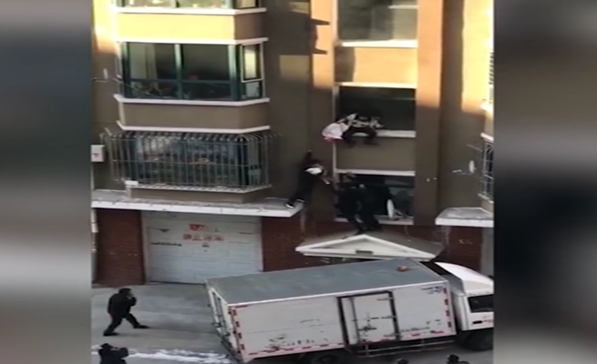 صيني ينقذ طفلاً ألقته والدته من شرفة المنزل ( فيديو )