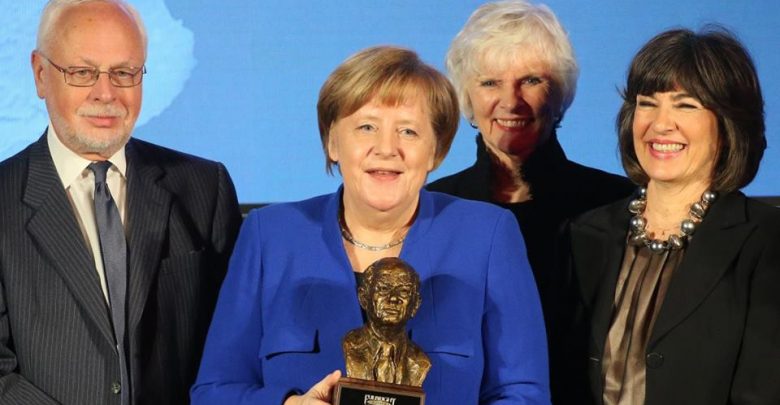 كانت جمعية “فولبرايت” الأمريكية كرَّمت ميركل “لشخصيتها القيادية البارزة ولدورها القوي من أجل التفاهم المتبادل والتعاون والسلام الدوليين”.