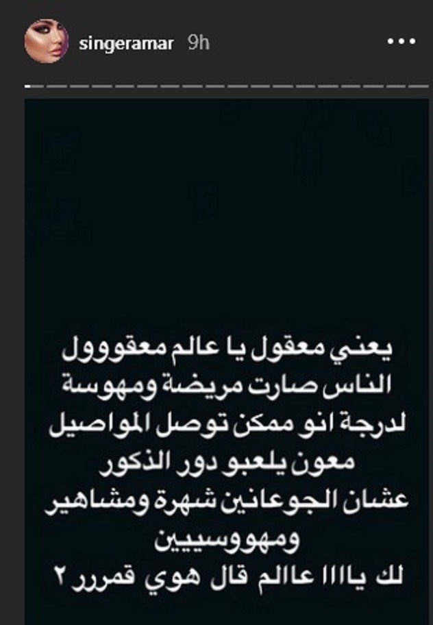 فضحت الفنانة اللبنانية قمر حبيبها عبر خاصية “ستوري” على #إنستغرام لخيانته لها مع رجل على حدّ قولها.