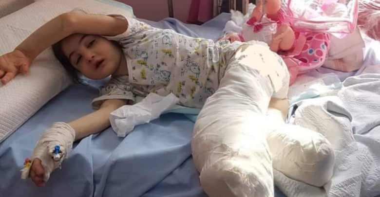وقال: “من ثم تم تحويلها إلى شعبة الجراحة العظمية في مستشفى دمشق، حيث أجريت عملية بتر لقدميها إلى ما تحت الركبة”.