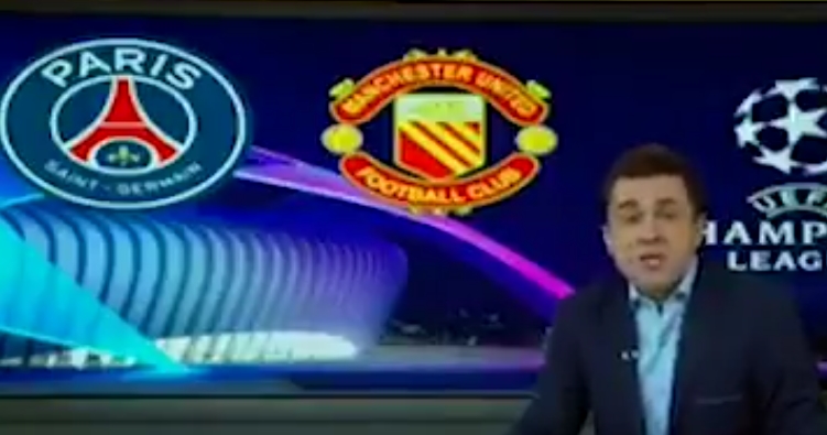 خلال تغطيته لمباراة #مانشستر_يونايتد و #باريس_سان_جيرمان في دوري الأبطال، استخدم التلفزيون الإيراني شعار يونايتد في الستينيات ليتجنب عرض الحالي الذي يحتوي على رمز شيطان