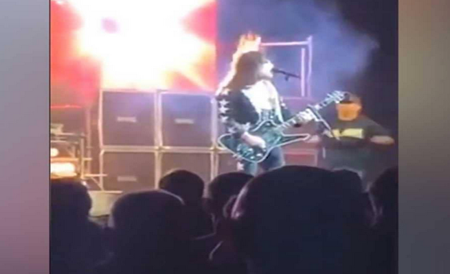تسببت ألعاب نارية على خشبة مسرح في ولاية آيوا الأمريكية، في إضرام النار بشعر مغني روك شهير.