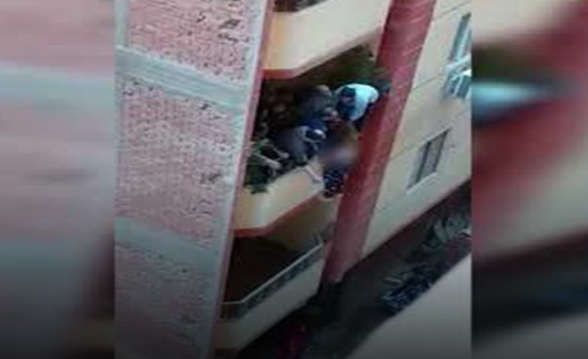 أسرع الأهالي لاكتشاف مصدر الصوت، واكتشفوا وجود ربة منزل تمسك بسور حديدي خاص بشرفة إحدى الشقق، تتشبث بالبقاء على قيد الحياة لاسيما أنها “عروسة”، حسب شهود عيان.