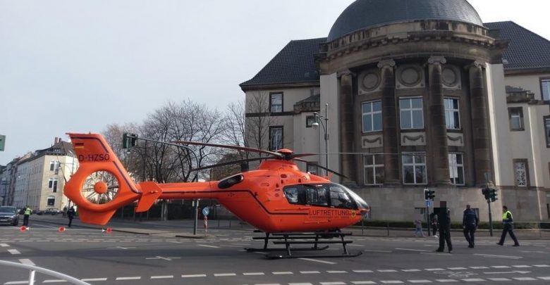 أصيـ. ـب رجل بجر و ح خطـ. ـيرة، الأربعاء، في مدينة كريفيلد الألمانية، بعد أن أ ضر م ا لنا ر في جسده احتجاجاً على استمرار سجن زعيم حزب العمال الكردستاني عبد الله أوجلان في تركيا.