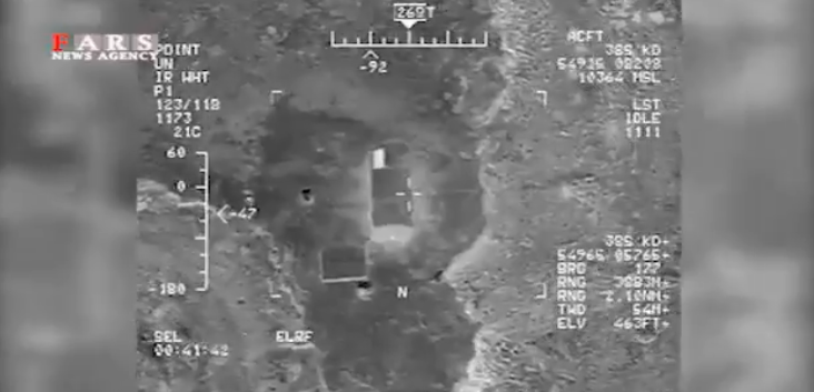 كما يضم التسجيل لقطات تظهر سقوط وتدمير طائرة مسيرة أمريكية أكدت الوكالة أنها عجزت عن العودة إلى قاعدتها وهبطت على بعد 10 كيلومترات عنها، ودمرها الجيش الأمريكي بواسطة مقاتلة. (FARS – RT)
