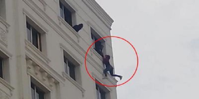 وتمكن أحد عناصر الشرطة من الإمساك بذراعي التركية فور محاولتها إفلاتهما متمكناً من إنقاذها وإعادتها إلى داخل الغرفة في اللحظة الأخيرة.