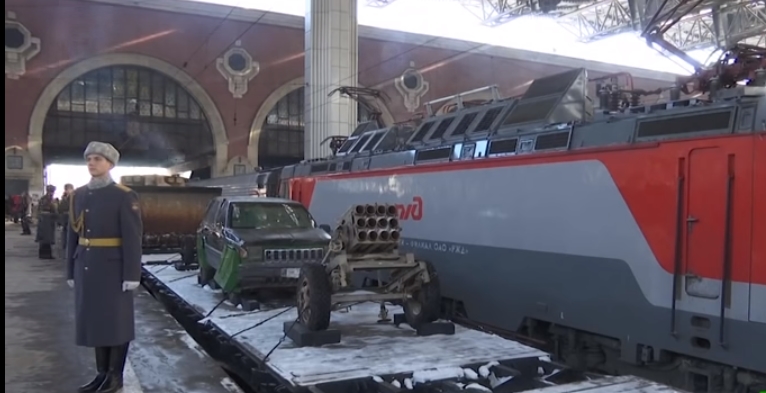 قالت وسائل إعلام روسية، إن قطاراً تابعاً لـ “العملية التاريخية العسكرية بعنوان (الانعطاف السوري) يحمل الأسلحة المصادرة من المسلحين السوريين، توجه السبت، من محطة قازان للقطارات في موسكو إلى المدن الروسية”.