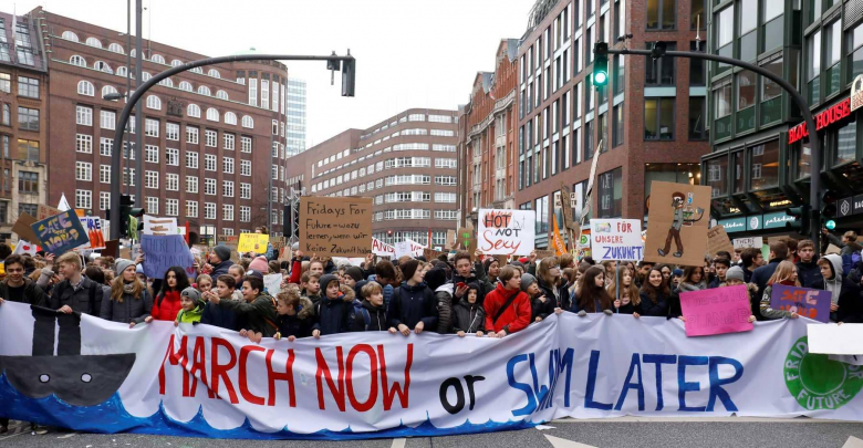 تجمع آلاف الطلاب، الجمعة، في مدينة هامبورغ شمالي ألمانيا كجزء من احتجاج عالمي يدعو إلى اتخاذ إجراءات للحد من ظاهرة الاحتباس الحراري.