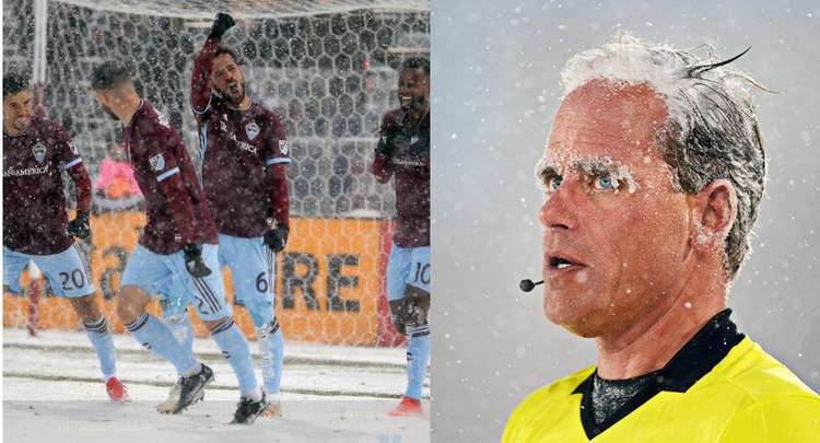 وأقيمت المباراة بين كولورادو رابيدز مع ضيفه بورتلاند تمبرز، في أجواء باردة للغاية، وسط تساقط كثيف للثلوج، وفق ما اوردت قناة “روسيا اليوم”، ووصلت درجة الحرارة فيها إلى 18 درجة تحت الصفر.
