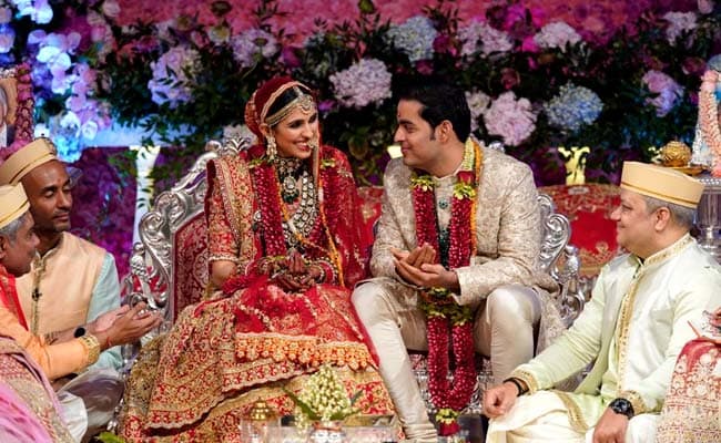 والعروس شلوكا ميهتا (28 عاما) ابنة روسل ميهتا وهو تاجر مجوهرات ثري ومدير لشركة روزي بلو المملوكة للعائلة.