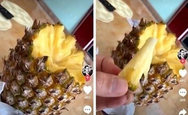وفي الفيديو الذي نشره مستخدم يُدعى ديلون روبرتس على موقع تيك توك، يظهر شخص وهو يقوم بانتزاع أجزاء من حبة الأناناس واحدة تلو الأخرى، بعد أن قام بتقطيعها من الأعلى.