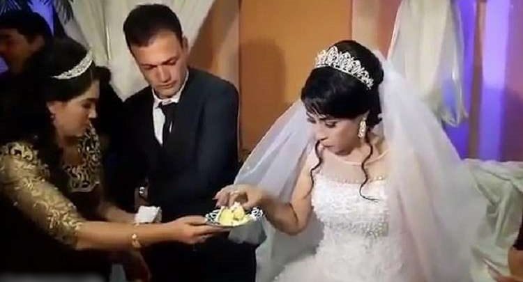 ووفق ما اوردت قناة “روسيا اليوم”، يظهر الفيديو عروسا حاولت أن تمازح عريسها في يوم زفافهما، فقدمت له قطعة حلويات ثم سحبت يدها دون أن يتمكن من أكلها، فلم يتحمل العريس تصرفها ووجهة لها صفعة على وجهها.