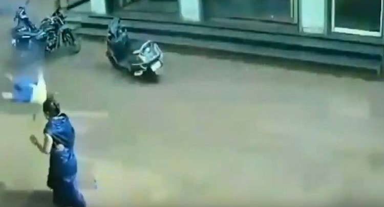 طفل هندي يسقط من الطابق الثالث على أسلاك كهرباء و ينجو ! ( فيديو )