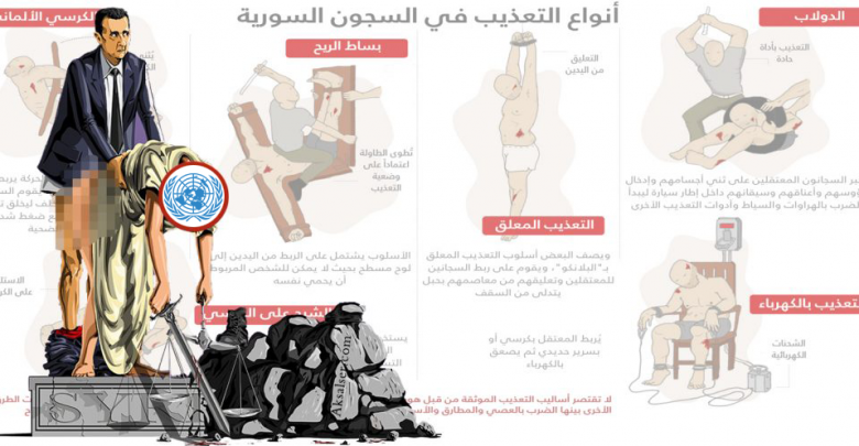 ووفقا للأمم المتحدة وجماعات حقوق الإنسان، فإن النظام يمارس تعذ يباً وا نتهاكا ت ممنهجة، وأن الآلاف -إن لم يكن عشرات الآلاف- من المعتقلين ربما لقوا حتفهم.