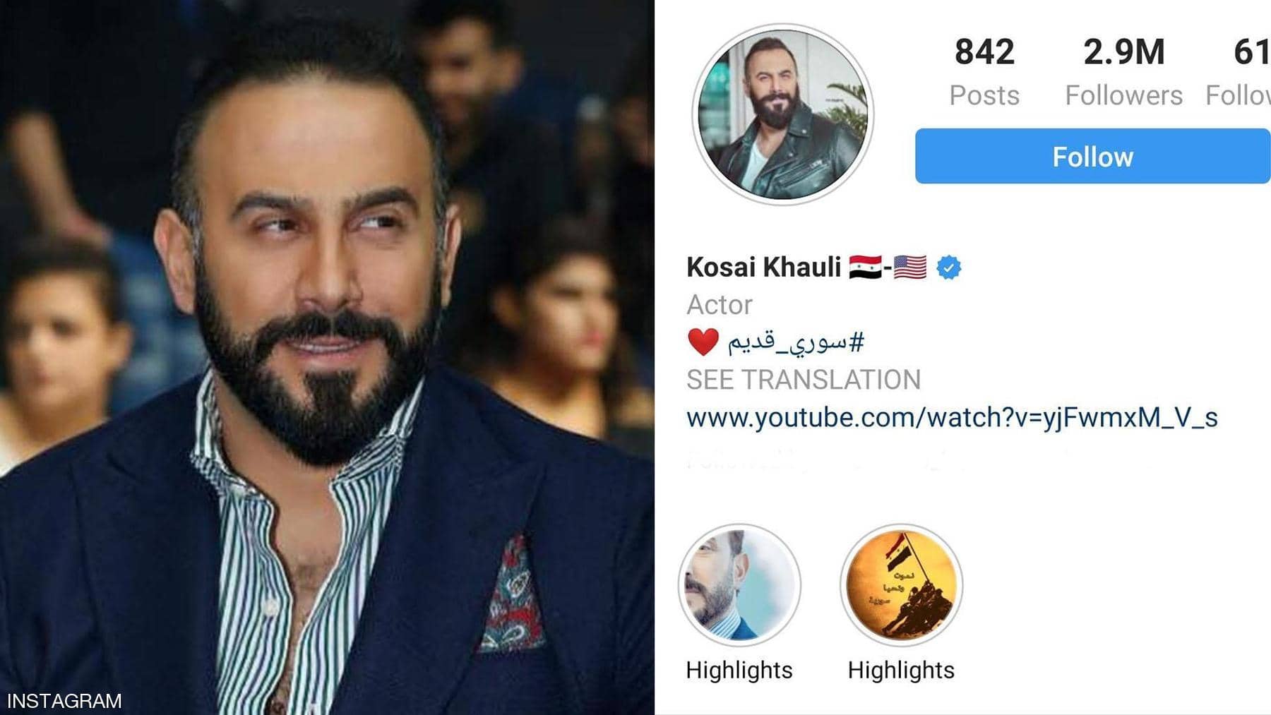 ويظهر حساب خولي على “إنستغرام”، الذي يتابعه حوالي 3 ملايين شخص، بالعلمين السوري (النظامي) والأميركي، جنبا إلى جنب، مع عبارة “سوري قديم” في المساحة التعريفية للحساب.