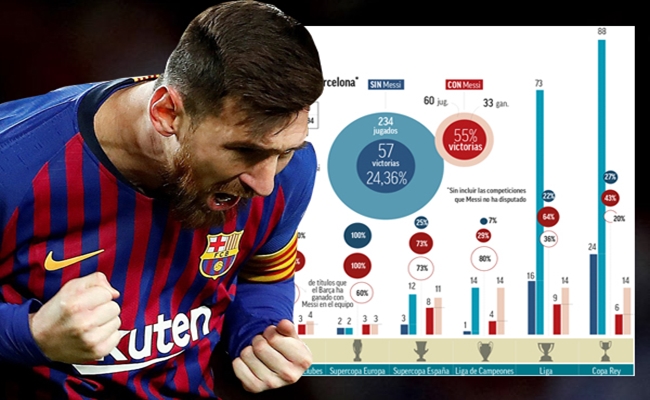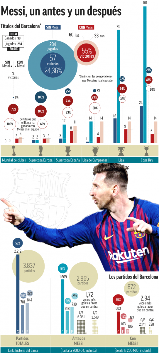 وكان برشلونة قد كسب 33 لقباً خلال تواجد ميسي ضمن صفوفه، مقابل 20 لقباً فقط لريال مدريد، وخلال هذه الحقبة اصبح المهاجم الأرجنتيني افضل هداف في تاريخ الدوري الإسباني وتاريخ ناديه الكتالوني.