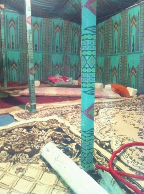 وذكر مسعود أن نوعية الخيمة ولونها والرسومات التي تزينها نادرة ولا تتوفر إلا فيها.
