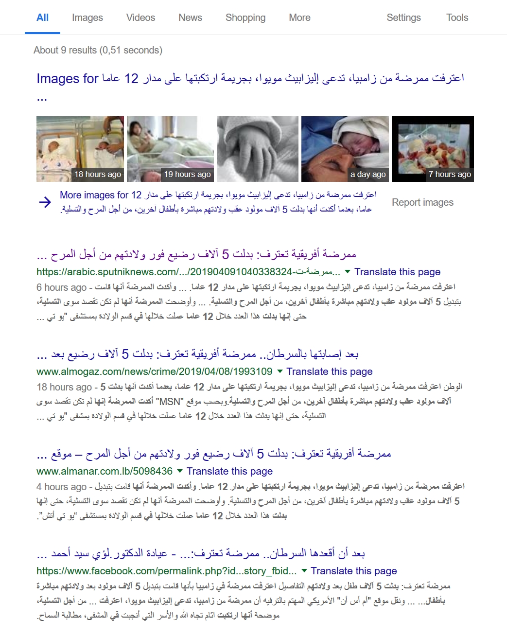 وجاء في الخبر أن الممرضة إليزابيث مويوا قامت بتبديل 5 آلاف طفل في ثمانينيات وتسعينيات القرن الماضي (1983-1995)، في مستشفى بزامبيا، وقد اعترفت بفعلتها مؤخراً بعد إصابتها بالسرطان.